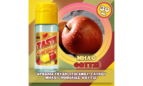 Taste Capsule Μήλο Φούτζι 30 ml (Φρέσκο, Τραγανό Κόκκινο Μήλο) ΜΗΛΟ ΦΟΥΤΖΙ ΦΡΕΣΚΟ, ΤΡΑΓΑΝΟ ΚΟΚΚΙΝΟ ΜΗΛΟ Ένα μήλο την ημέρα, τον γιατρό τον κάνει πέρα. Όπως το άτμισμα κάνει πέρα το κάπνισμα. Ίσως για αυτό ταιριάζουν τόσο πολύ το μοναδικά τραγανό μήλο με το άτμισμα. Γευτείτε το ΜΗΛΟ ΦΟΥΤΖΙ με τον ατμοποιητή σας, για γεύση φρέσκου μήλου τόσο αυθεντική, που θα αισθάνεστε σα να βυθίσατε τα δόντια σας στην τραγανή σάρκα ενός μήλου Φούτζι, γεμίζοντας το μυαλό σας με το χαρακτηριστικό ήχο μιας τέτοιας δαγκωματιάς και το στόμα σας με δροσερές φρουτώδεις νότες.