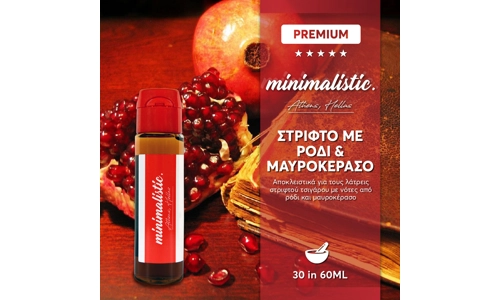 Minimalistic – Mix-Shake-Vape 60ML – Στριφτό με Ρόδι & Μαυροκέρασο Δεν είναι όλα τα καπνικά υγρά το ίδιο και το ΣΤΡΙΦΤΟ ΜΕ ΡΟΔΙ & ΜΑΥΡΟΚΕΡΑΣΟ αποτελεί απόδειξη αυτού. Τα μαυροκέρασα και τα ρόδια ενώνονται σε ένα ντουέτο, μαζί με στριφτό καπνό Βιρτζίνια, για μια ατμιστική απόδοση που θα σας κάνει να προσκυνάτε. Τόσο τα μαυροκέρασα όσο και τα ρόδια, είναι γλυκά και κάπως στυφά από τη φύση τους. Αυτό το στοιχείο ενσωματώνεται όμορφα στο στρώμα καπνού, μαζί με την φυσική γλύκα των φρούτων. Μιλώντας για τον καπνό, μπορείτε να αισθανθείτε κάθε στοιχείο του καπνού Βιρτζίνια στον ατμό. Η ανάλαφρη αίσθηση και η ήπια γήινη γλυκύτητα, είναι στη σωστή ποσότητα. Μόλις πειραματιστείτε με τις ρυθμίσεις του mod σας και τα επίπεδα νικοτίνης, θα βρείτε το σωστό σημείο που δεν θα θέλετε ποτέ να αλλάξετε. Αλήθεια; Το ΣΤΡΙΦΤΟ ΜΕ ΡΟΔΙ & ΜΑΥΡΟΚΕΡΑΣΟ αξίζει να είναι στο ντουλάπι σας!